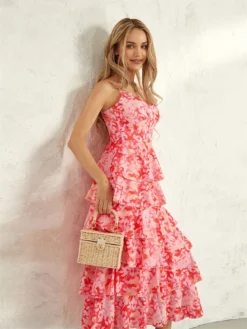 Women Floral Layered Ruffle Dress
